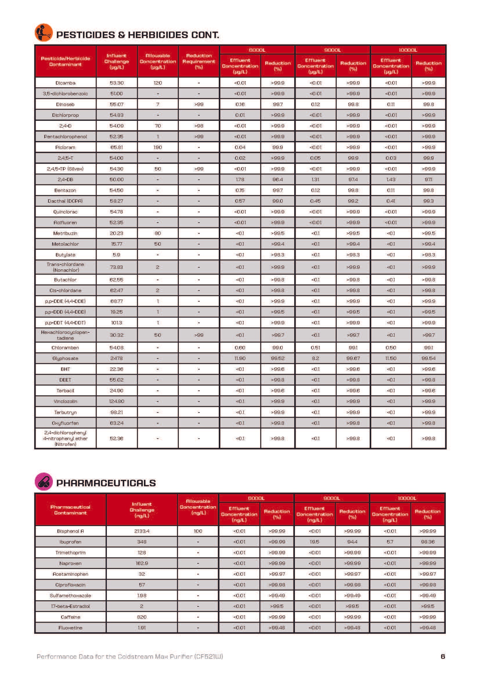 - 99,9 % des pesticides, herbicides et résidus pharmaceutiques