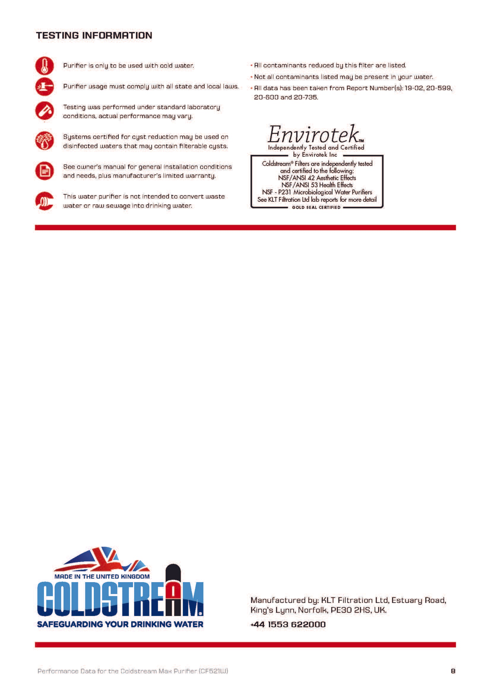 Les filtres Coldstream sont rigoureusement testés selon les normes :